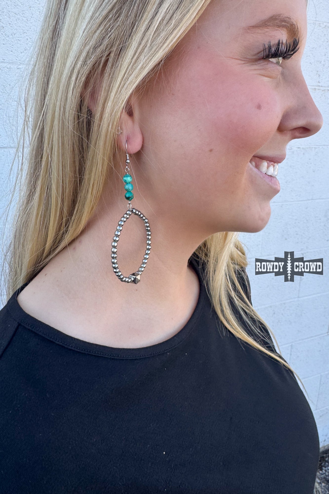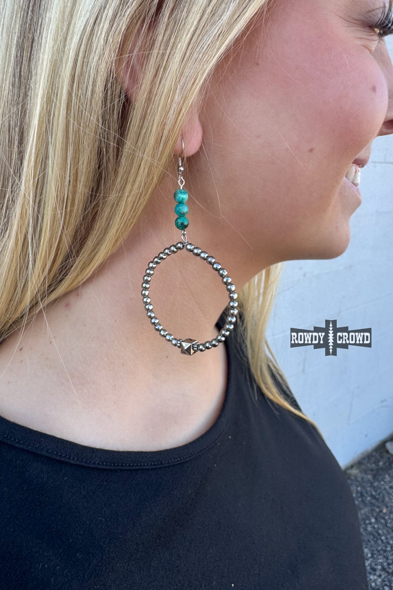 The Tatonka Hoops bring big, punchy energy with a mix of stacked turquoise beads up top and a bold silver beaded hoop below. A single faceted accent bead adds that extra edge, giving these hoops a look that’s both classic western and unmistakably rowdy. Lightweight, eye-catching, and ready to turn heads from rodeo nights to everyday wear.